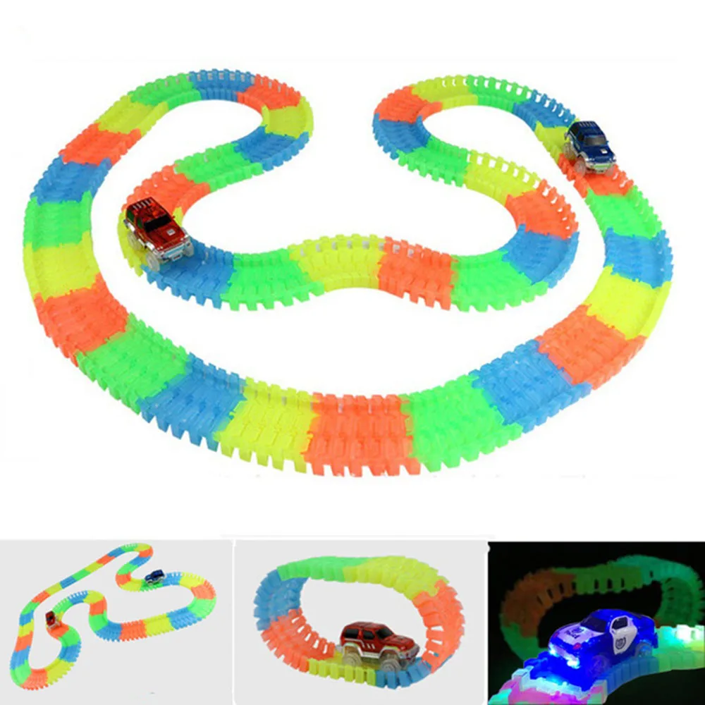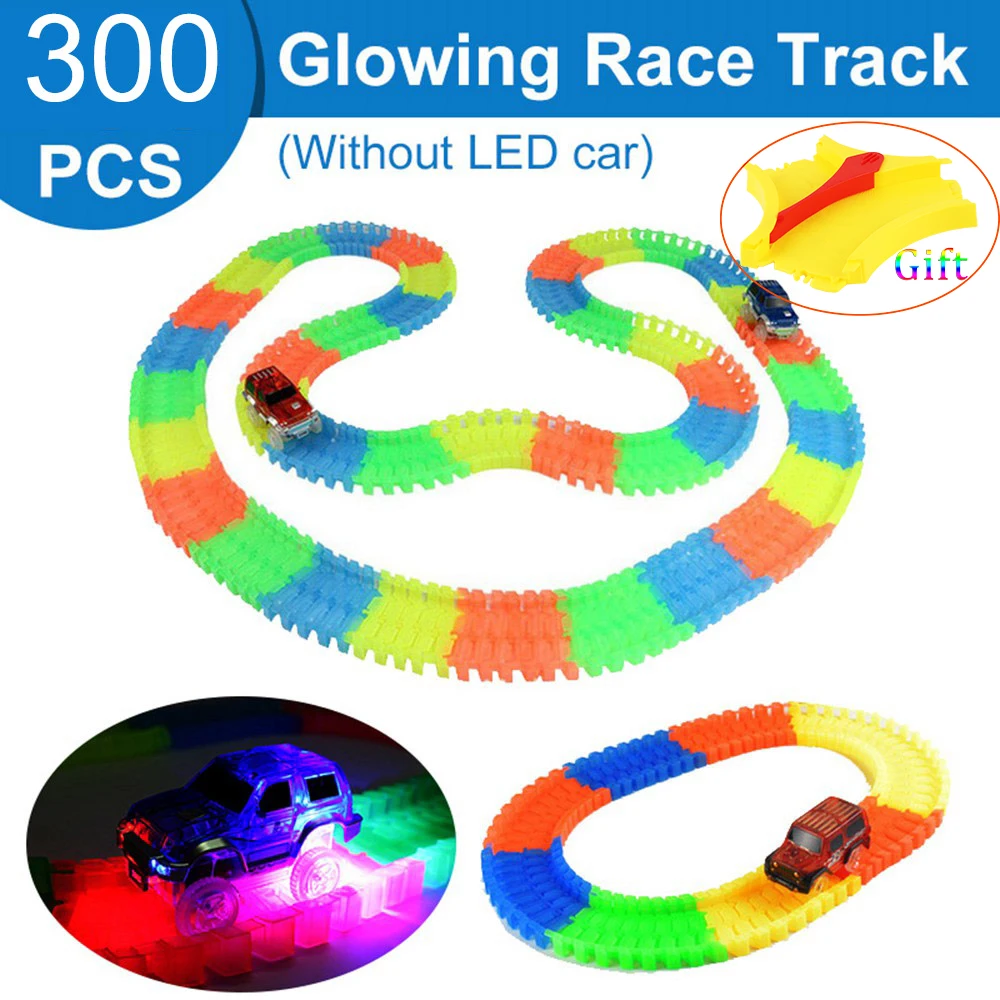 300pcs Glowing Light Plastic Track With LED Electronics Toy Glow race track Set Toys For Children B
