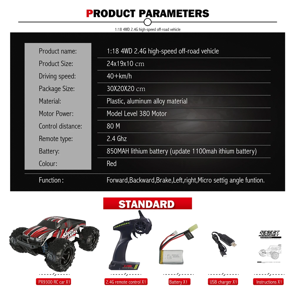 Hot Sale RC Car 9300 2.4G 1:18 Racing Cars Machine on the Remote Control Car 50KM/H High Speed Truck Off-Roa